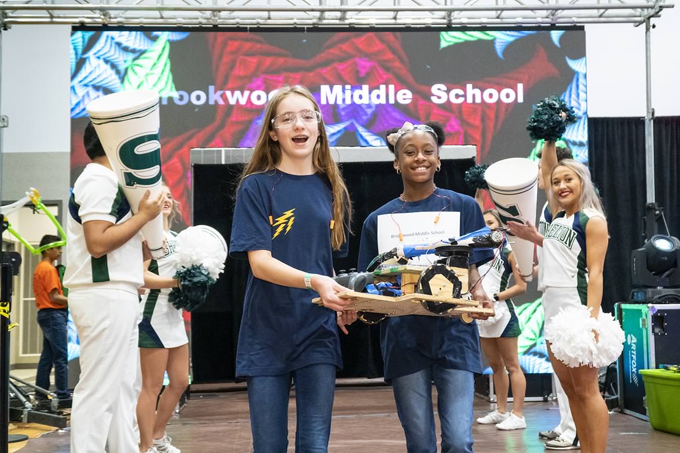 Middle school students carry robot
