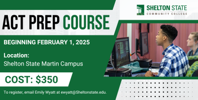 January 16, 2025 – Shelton State Community College (SSCC) Workforce Development will offer an eight-week ACT preparation course on the Martin Campus beginning February 1 and continuing on February