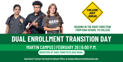 February 20, 2026 – Shelton State Community College’s dual enrollment program will host Transition Day on Thursday, February 26 at 6:00 p.m. in the Martin Campus Atrium.