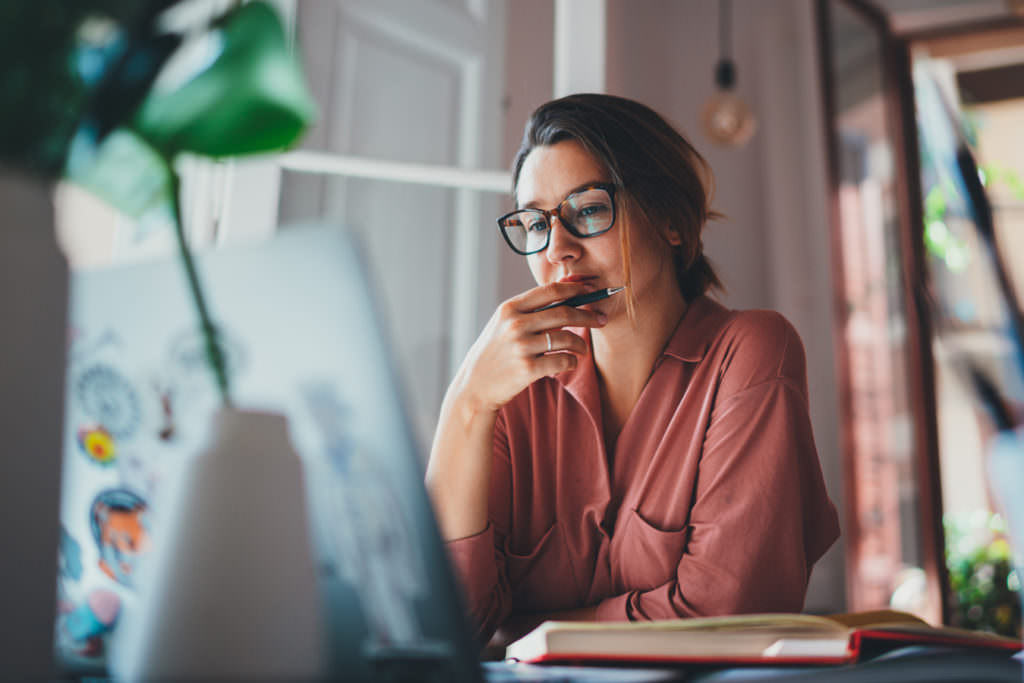 Published inYoung businesswoman thinking about something while sitting front